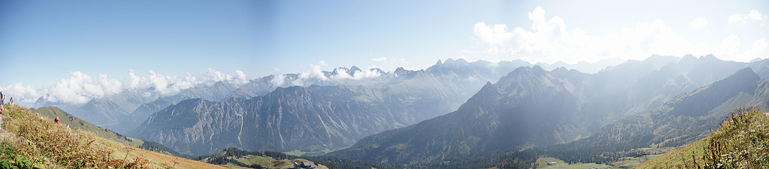 | Unsere heutige Wanderung führte uns auf das Fellhorn. Mit der Fellhornbahn ging hinauf auf über 2000 Meter zum Fellhorn. Von dort wanderten wir über den Schlappoltsee hinunter ins Tal. Wir genossen den herrlichen Blick ins Kleine Walsertal genauso wie den Blick auf das Naturschutzgebiet Allgäuer Hochalpen. Nach fünf Stunden Wanderung erreichten wir die Talstation der Seilbahn. |