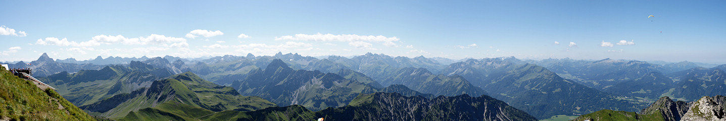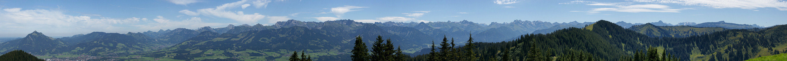 | Heute unternahmen wir eine Wanderung über die Hörner. Von Bolsterlang aus ging es mit der Hörnerbahn hinauf zum Weiherkopf. Von dort über den Panoramaweg zum Rangiswanger Horn und vorbei am Sigiswanger Horn zum Ofterschwanger Horn und dann mit dem Sessellift wieder hinunter nach Ofterschwang. Zum Abschluß des Tages holte ich das Auto dann in Bolsterlang mit dem Fahrrad wieder ab.