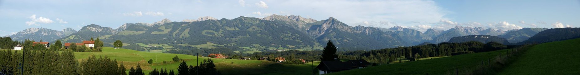 Heute hatten wir herrliches Wetter. Wir unternahmen eine Wanderung von Ofterschwang hinauf zum Allgäuer Berghof und weiter auf den Gipfel des Ofterschwanger Horns. Von da aus ging es weiter über den Panoramaweg zum Rangiswanger Horn, dessen Gipfel wir links liegen ließen und über die Kahlrückenalpe hinabstiegen zurück nach Ofterschwang. |  |